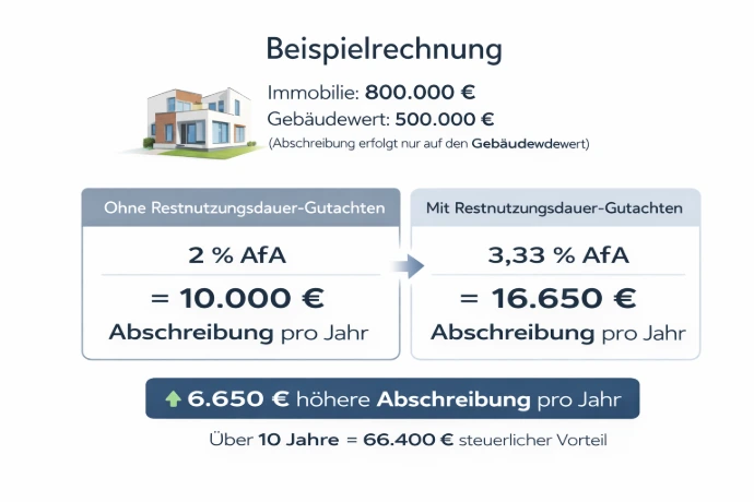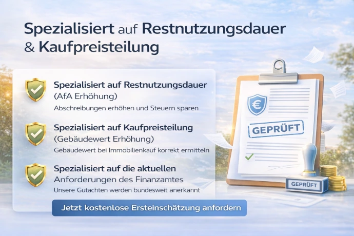 Mit einem Restnutzungsdauer-Gutachten kann eine kürzere tatsächliche Nutzungsdauer Ihrer Immobilie nachgewiesen werden – und damit eine höhere steuerliche Abschreibung.